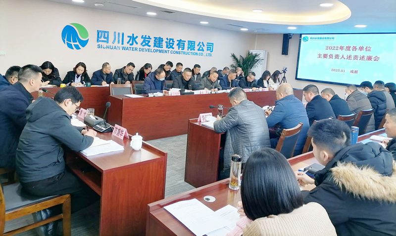 2023年1月18日,建設(shè)公司召開2022年度各單位主要負(fù)責(zé)人述責(zé)述廉會議,公司黨委專職副書記唐驚濤主持,公司黨委書記、董事長袁斌講話,公司領(lǐng)導(dǎo)班子成員、公司各黨支部書記、副書記,各單位(包括總部各部門、各分公司、各下屬企業(yè))主要負(fù)責(zé)人、職工代表近50人參會。