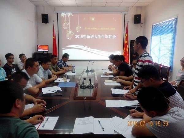 2016年7月18日,7名大學生新員工到達局四處毗河項目部,項目部的綜合部利用兩天時間對大學生進行了進場教育。內容包括企業文化、勞動紀律、安全質量等。項目部提前為大學生準備好的必備生活用品,讓大家感受到了工程局大家庭的溫暖。2016年7月19日下午,毗河工程項目部在一樓會議室召開新一屆大學生歡迎會。項目部領導、各科室負責人、主要技術人員以及新入職大學生共計21人參加會議。項目部總工程師張亮亮主持歡迎會。