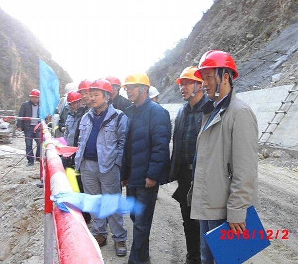 2016年12月2日下午,華電集團水洛河公司總經理蒲春雨率公司相關部門負責人到博瓦水電站首部樞紐工地現場檢查指導安全生產工作。