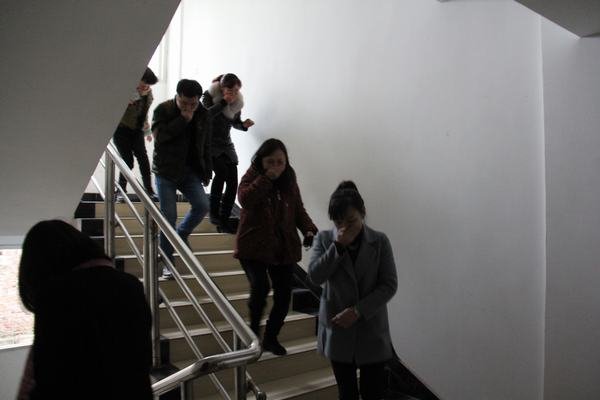 會上,保衛處處長卓智賢組織學習了機關團體、企業事業單位相關消防管理規定;大家觀看了《119對你說》火災警示教育片,充分認識到火災對人類社會、單位家庭所造成的災難和嚴重后果,明確了自身在消防管理和生產生活中的相關職責,必須切實從點滴做起,從細節做起,預防和減少火災事故。在火災逃生演練時,預設機關辦公樓二樓配電室因電線固定裝置松動,引起短路,煙霧巳彌漫二、三樓整個梯步間,并出現明火。接到報告后,由袁斌宣布,機關所有員工迅即從辦公室順著消防安全通道有序撤出辦公樓,一直撤到機關院壩外的安全地帶。撤出時,不能攜帶任何物品。