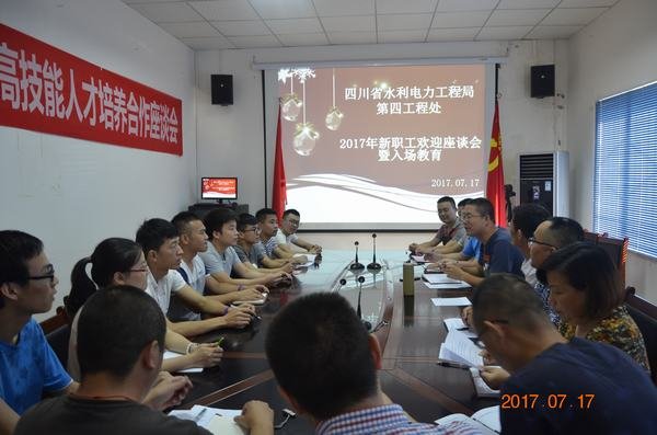 2017年7月17日下午4點,局第四工程處在毗河項目部會議室舉行新進大學(xué)生入職歡迎座談會。會議由處總工程師張亮亮主持,副處長羅茂林、工會主席方兵及毗河項目各部門主要負(fù)責(zé)人參加座談會。
