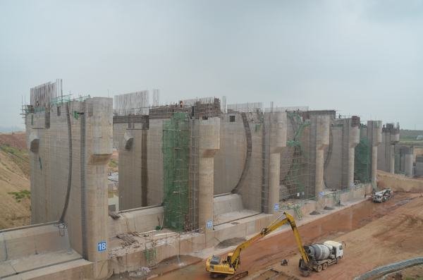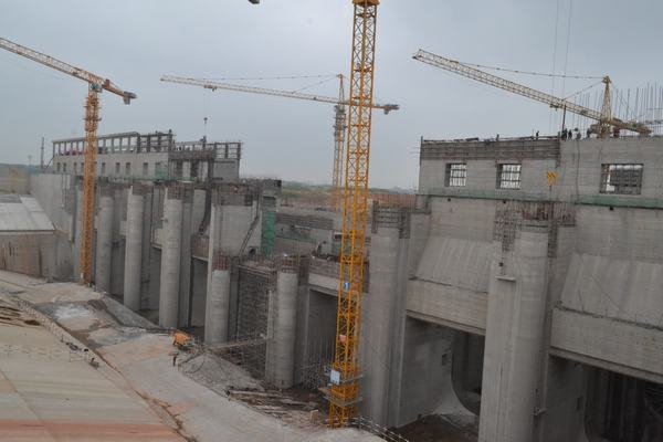 發電廠房進水口橋機安裝船閘全景閘壩上游閘壩下游
