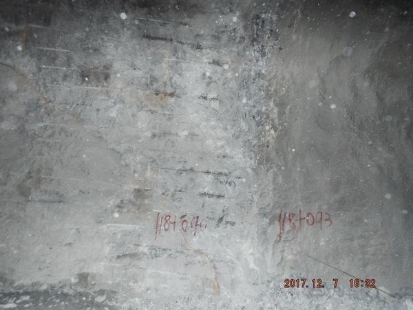 新藏電站8#洞下游全長1074米,合同樁號18+093。2016年4月15日進入主洞施工。前段多以Ⅴ類為主,后段以Ⅲ類為主。為控制成本,公司技術人員與施工人員反復探討、摸索。在不使用導爆索的情況下,成功制定了光面爆破的技術方案。光爆效果受到業主、監理、設計的高度贊揚,并被業主樹立為洞室光爆效果榜樣提供給水洛河各施工單位借鑒學習。