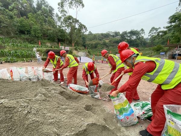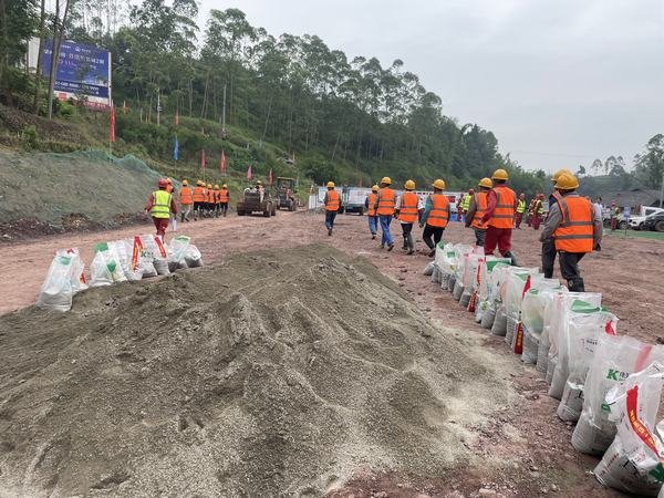 應急搶險分隊鏟裝防汛沙袋