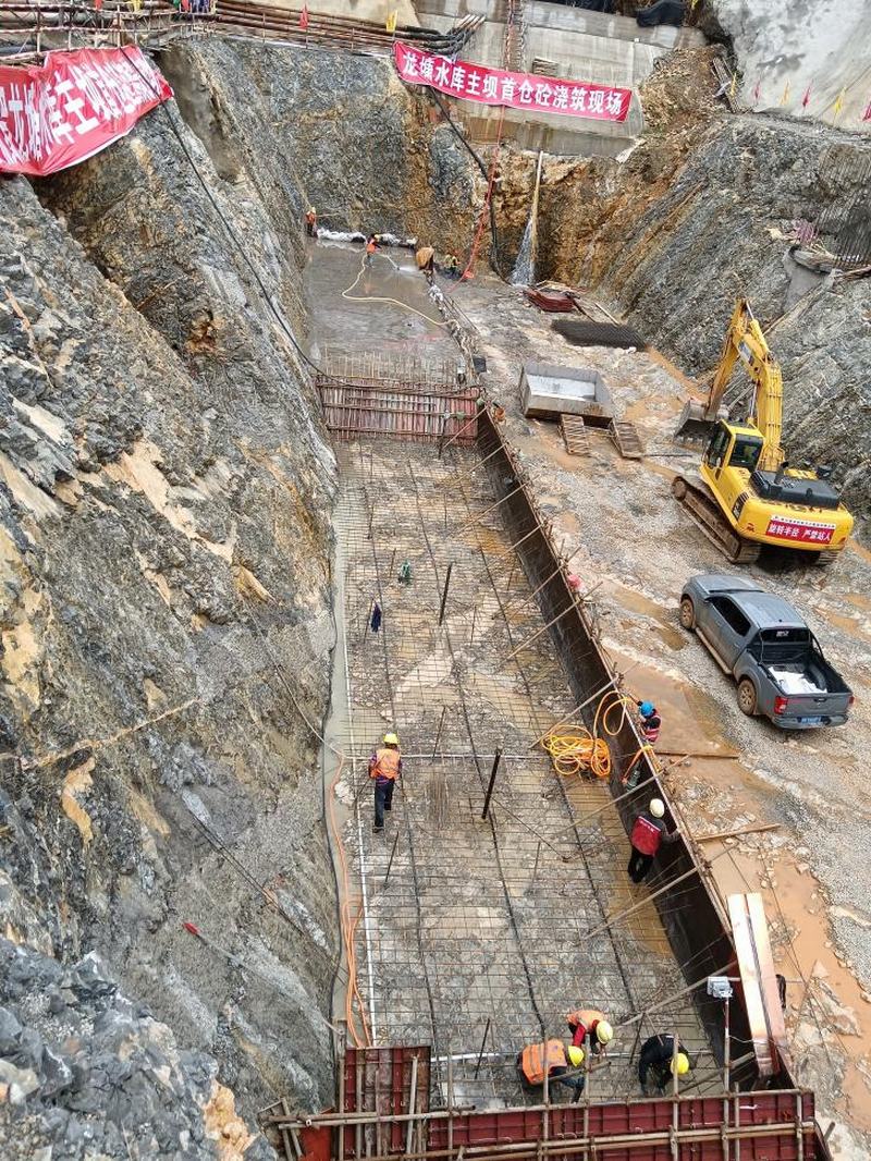 龍?zhí)了畮旒肮鄥^(qū)工程于2021年5月19日正式開工,龍?zhí)另?xiàng)目部克服征地移民、動力線路拆遷、炸藥手續(xù)審批、氣候條件差等問題,在公司的堅強(qiáng)領(lǐng)導(dǎo)下,在確保安全和工程質(zhì)量的前提下、龍?zhí)另?xiàng)目部全體職工通過不懈努力,按期完成了大壩壩基開挖、副壩開挖、圍堰填筑、滑坡體開挖等施工項(xiàng)目,并于2022年7月20日順利實(shí)現(xiàn)大壩主壩首倉混凝土澆筑。主壩首倉混凝土的順利開倉澆筑,為順利完成龍?zhí)另?xiàng)目的年度目標(biāo)跨出了堅實(shí)的一步。