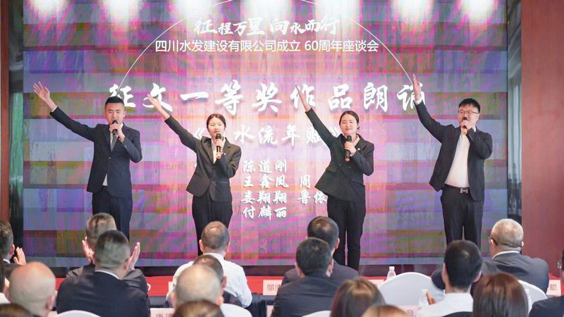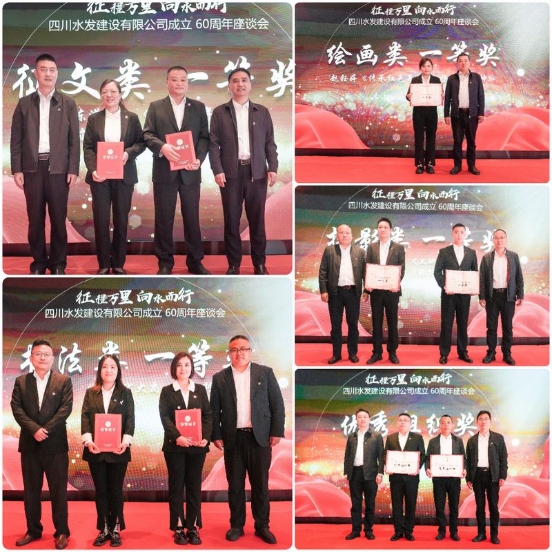 會上,發布了公司60周年大事記《征程》、畫冊《向水而行》,并對公司企業文化品牌進行釋義,播放企業宣傳片《水利鐵軍 匠筑不凡》,觀看了舞蹈《筑夢》視頻。同時,現場為公司成立60 周年主題征文和書畫攝影比賽活動優秀組織獎獲獎單位及一等獎獲得者頒發證書,并對詩歌類一等獎征文作品進行了朗誦。