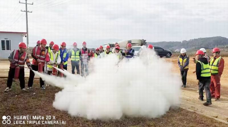 隨后,EPC總包部安全總監周景濤向大家重點講解了滅火器的使用方法,進行了滅火演練。演練活動在緊張有序的氛圍中進行,上午10時,演練圓滿結束。