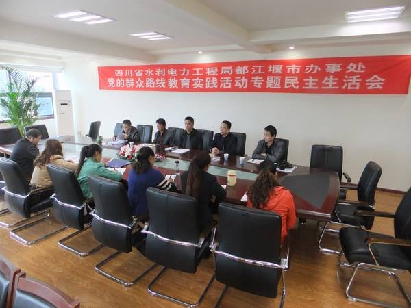 根據中央統一部署,按照黨的群眾路線教育實踐活動專題民主生活會精神,局都江堰市辦事處于2013年10月18日下午,在水利大廈三樓會議室召開了黨的群眾路線教育實踐活動專題民主生活會。局黨委委員、辦公室主任溫慶生,局勞動人事處處長舒建國,局黨委辦公室主任夏永紅應邀到會指導。局都江堰市辦事處班子成員、全體黨員、職工代表、科室負責人參加了會議。會議由黨支部書記孫代華主持。
