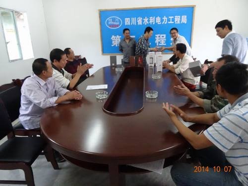 后溝水庫項(xiàng)目部經(jīng)理李軍為獲獎(jiǎng)職工頒發(fā)比賽紀(jì)念品