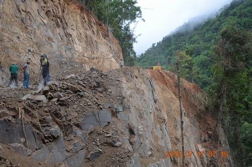 面對(duì)出現(xiàn)的諸多困難,項(xiàng)目全體人員心懷全局,以與甲方東方電氣長(zhǎng)期合作發(fā)展的戰(zhàn)略思想,克服高溫酷暑、雨淋、蚊蟲螞蟻叮咬、山頂危石、通信不暢等艱苦環(huán)境,大家齊心協(xié)力努力工作,局長(zhǎng)助理、四處處長(zhǎng)茍仕聰2次來到施工現(xiàn)場(chǎng)親自督促解決各種問題,多次和甲方領(lǐng)導(dǎo)進(jìn)行溝通協(xié)調(diào)解決工程中遇到的問題。在甲方撥付首批預(yù)付款后未再對(duì)工程增加資金投入的情況下,我處積極籌措資金加快工程進(jìn)程,經(jīng)過全體參建人員的不懈努力,截止7月18日順利完成3596.004m進(jìn)場(chǎng)公路毛坯路的開挖工作,公路沿線橋梁土建、涵洞及部分路基成型也相繼完成,比調(diào)整后工期提前12天完成毛坯路的開挖工作,為雨季后剩余工程提前完工奠定了基礎(chǔ)。