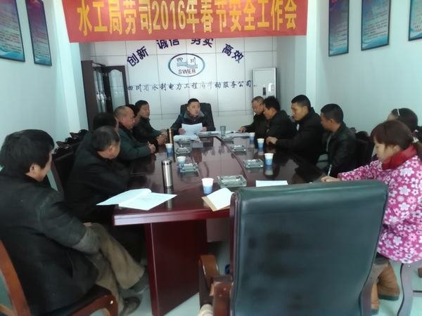 2016年1月29日下午,局勞服司組織修理廠全體職工以及配屬人員在廠會議室集中傳達學習資陽市雁江區公路運輸管理所2015年度質量信譽考核暨安全工作會議精神;結合工程局對勞服司的安全檢查工作情況,安排部署勞服司2016年春節期間的安全工作。