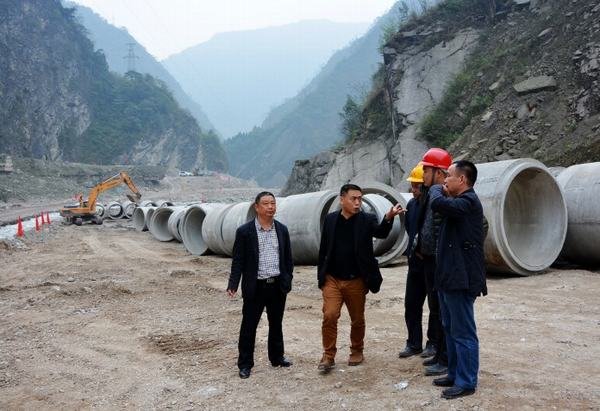 2016年4月1日,四川省防汛辦公室調研員李東風在綿竹市水務局副局長何紅光、綿竹市防汛辦公室主任龍文彬的陪同下檢查了綿竹市清平鄉小崗劍高位山體滑坡處置進展情況。