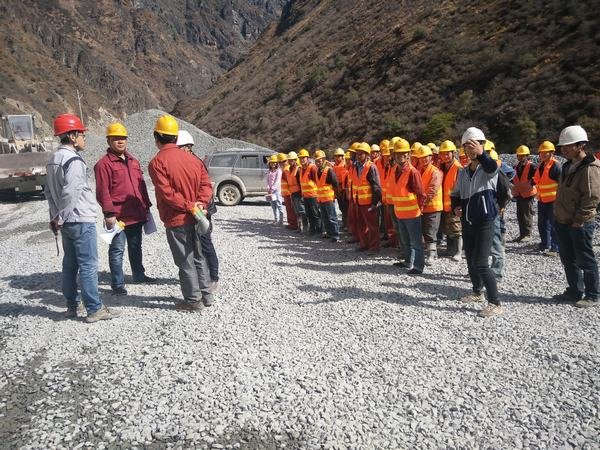 上午9:30,在指揮長甘曉華的號令下,演練活動正式開始。副指揮長鄭中華就暴雨強度、水位情況以及近期氣象情況做了簡明扼要的匯報,宣布啟動防洪應急預案。此次活動,模擬了洪水到來前組織壩上作業人員、施工機械設備的安全撤離,以及材料物資的搶險和安全轉移、上游圍堰填筑加固、搶險人員受傷救助等情景。在防洪警報拉響后,大家都保持著高度的警惕性和嚴肅性,壩上作業人員在應急小組長丁忠洪的安排下井然有序地快速撤離,迅速撤離到安全避險區。在基坑物資搶險轉移、圍堰加固、傷員救助演練中,大家都嚴陣以待、爭分奪秒、團結協作,表現出了一種難能可貴的團隊精神。