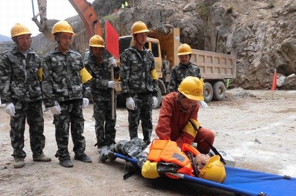 局三機處博瓦電站項目部為了圓滿完成任務,在應急演練前對各環(huán)節(jié)作了周密部署,先后完成了防洪度汛應急預案、演練方案的編制、度汛設備物資準備、人員動員、預演等工作。實施過程中,主要進行了洪水到來前的預警、人員逃生、現場應急搶險、設備物資撤離、人員受傷救護等科目的演練。