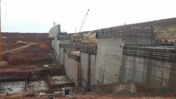 截止6月底:廠房全年縱向混凝土圍堰已全部完成澆筑,正在填筑廠房全年橫向圍堰,完成廠房6臺機組底板澆筑,廠房右邊墻澆筑最大高度達20m。本月完成混凝土澆筑2.47萬方。
